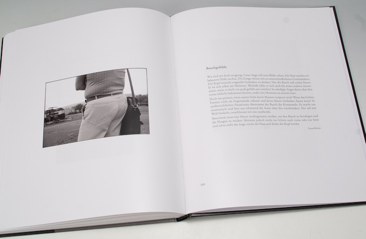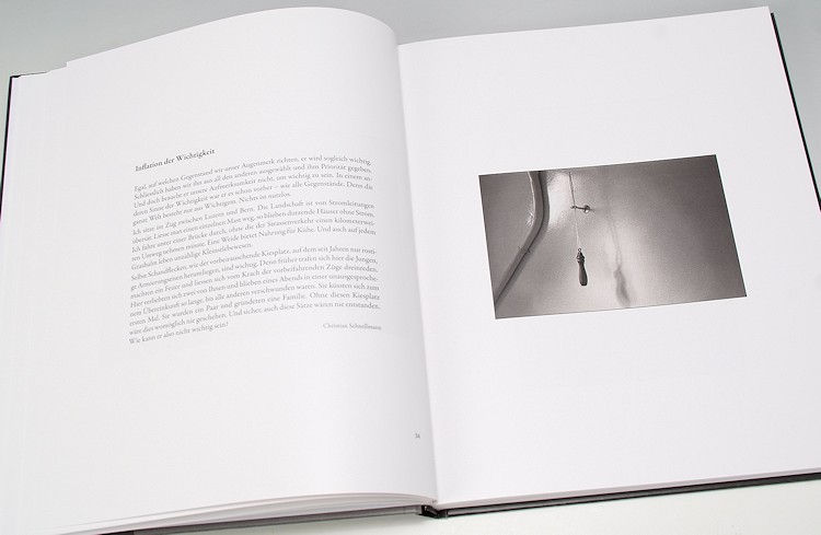 Aber die Bilder sind ja nur die eine Hälfte. Steigt man in die Texte ein, von denen es zu jedem Bild einen gibt, dann bekommt der Essayband plötzliche eine völlig neue Dimension. 30 unterschiedliche Autoren, die meisten von ihnen in philosophischer Fachrichtung tätig, befassen sich mit den Bildern und lassen ihren Gedanken freien Lauf. Gedanken, die erklären, die widersprechen, die interpretieren, die ablenken, die begründen oder konfrontieren. Je tiefer man in das Buch einsteigt und sich mit den Bildern und den dazugehörenden Texten befasst, desto spannender wird es. Einige der Bilder bekommen neue Werte. Einige versteht man besser. Oder die Texte stehen in Widerspruch zur eigenen Gedankenwelt. Fotografien und Interpretationen verbinden sich …
