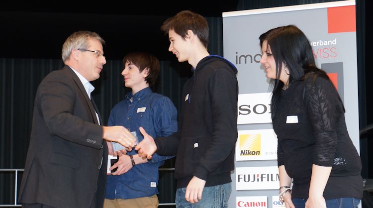 Für drei Auszubildende dürfte der gestrige Tag ebenfalls unvergessen bleiben: Corinne Mazzocco (Fotolabor Spiess), Jonas Sala (Fotostudio Casino) und Luca Rüedi (Foto Bäumli) hatten anlässlich eines überbetrieblichen Weiterbildungskurs (üK) das beste Video über ihr Berufsbild produziert. Aufgabe war es, die drei Fachrichtungen in einem Kurzvideo darzustellen und den Film mit Strandbildern, bewegten Szenen und Musik anzureichern. Die Aufgabe sollte nicht zuletzt auch verdeutlichen, wie wichtig Video in der Ausbildung ist, denn schliesslich weiss heute jeder Kunde, dass moderne Digitalkameras über eine Videofunktion verfügen und erwartet im Fotofachgeschäft die entsprechende Kompetenz. Wirklich brillant, was die drei Zweitlehrjahrstiften produziert hatten, und die als Belohnung erhaltene Samsung Galaxy Kamera wird ihnen sicher Spass machen.
