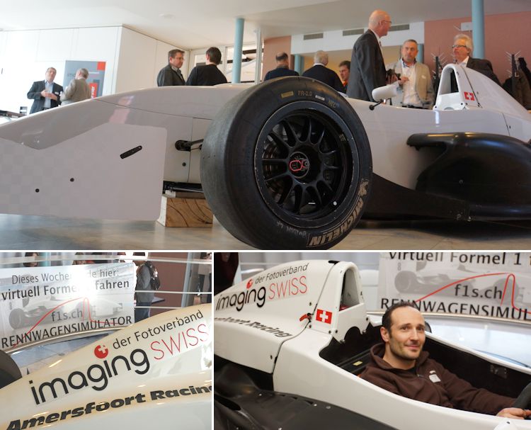 Dass eine Generalversammlung keine langweilige und fantasielose Veranstaltung zu sein braucht, hat imagingswiss.ch, welche letztes Jahr Namen und Erscheinungsbild für Besseres über Bord warf, schon mehrfach bewiesen. Dazu gehört beispielsweise der reichhaltige und bereits zur Tradition gewordene Brunch, welcher die Mitglieder und Gäste zu frü-her Morgenstunde aus allen Regionen der Schweiz nach Binningen bei Basel lockte. Obwohl der von Cuno Mathis organisierte Kronenmattsaal für die rund 120 Anwesenden eine Nummer zu gross war, erwies sich seine Infrastruktur als geradezu prädestiniert dafür. Genügend Nebenräume für die vorgängigen Jahresversammlungen der Regionsverbände und die Jobbörse – dazu später – und auch Martin Spiess fand genügend Platz für seinen Formel-1-Simulator, der mehr für Jung als für Alt (und noch mehr für Schlank als für Dick) eine seltene Attraktion war.