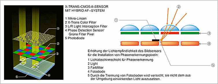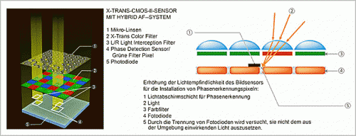 Spiegellose Systemkompaktkameras nutzen verschiedene Technologien, die unter dem Begriff «Hybridautofokus» zusammengefasst werden. Im Bild der Trans-X CMOS-II Sensor von Fujifilm. (Darstellung: Fujifilm)