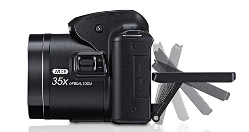 Mit der Samsung WB2100 hat der südkoreanische Mischkonzern eine weitere Bridge-Kamera Superzoom vorgestellt. Für Videoaufnahmen bietet die 16-Mpx-Kamera an ihrem 35fachen Zoom eine zusätzliche Movie Zoom-Taste, die weiches Zoomen während der Filmaufnahme erlaubt.