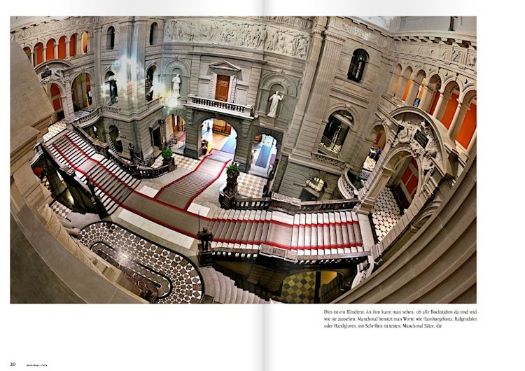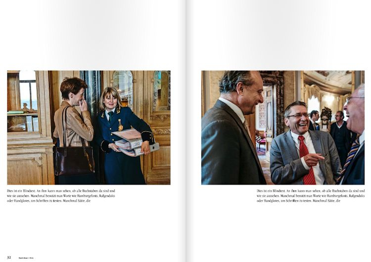 Der Bildband von Fred Mayer wird ein wichtiges Zeitdokument über das neue Bundeshaus werden, das nicht nur den Sitz unserer Landesregierung in sorgsam gestalteten Bildern zeigt, sondern das vieles dieses Prunkbaus enthüllt, das dem Besucher normalerweise verborgen bleibt. Hinzu kommt die Art und Weise, wie der Fotograf Fred Mayer die Dinge sieht, einerseits streng dokumentarisch, anderseits aber kreativ mit ungewohnten Perspektiven und Ansichten.