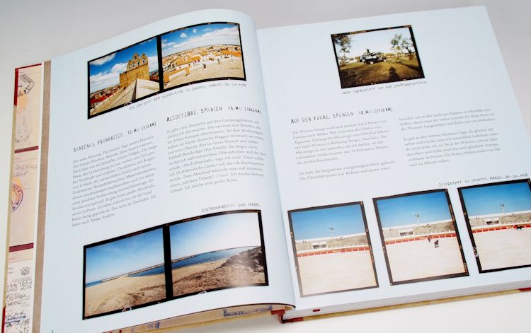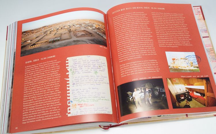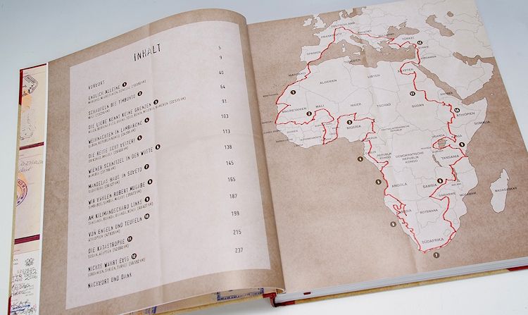 Was weiter fasziniert, ist die fantasievolle Gestaltung des Buches. Jede Doppelseite präsentiert sich anders und belegt die Erlebnisse mit interessanten Dokumenten, wie Visas, Stempel, noch nie gesehenen Banknoten, Notizzetteln und Briefausschnitten – bis hin zu exotischen Bierflaschenetiketten. Das Buch lebt – es reisst seine Leser mit und gibt viel über eine der interessantesten und aussergewöhnlichsten Afrikarouten preis.