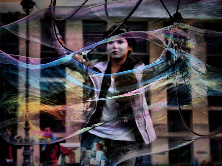 «Mein Quadroscope geht zurück auf eine Erfindung des ungarischen Künstlers Lyubomir Szabo. Es ist ein Spiegelsystem, mit dem man ganz erstaunliche Portraits machen kann. Der Effekt ist mit bloßem Auge sichtbar, es ist ein reiner Spiegeleffekt und keine digitale Manipulation. Es funktioniert ganz einfach: Jemand hält seinen Kopf in den Kasten, und auf der gegenüberliegenden Seite fotografiert jemand.»