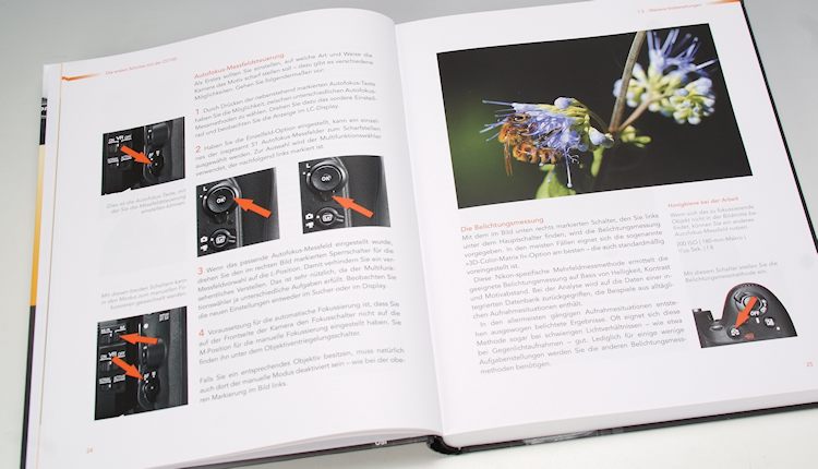 Der Aufbau des Buches ist nicht viel anders als die früheren Werke von Gradias. Der Auto erklärt zunächst, wie es zur D7100 kam, wie sie sich in der Nikon-Modellreihe situiert und was ihre Besonderheiten sind. Und damit kommt der Leser bereits zur Handhabung der Kamera, mit vielen Hinweisen aus der Praxis und erklärenden Illustrationen mit den schon fast Gradias-typischen Pfeilen, die übrigens nicht einfach fantasielos rot sind, sondern jetzt in der jeweiligen Kapitelfarbe erscheinen. Vor allem die Praxisinformationen sind dabei wertvoll, weil es der Autor nur selten bei einer nüchternen Erklärung bewenden lässt, sondern immer noch etwas aus seiner reichhaltigen persönlichen Erfahrung einfliessen lässt. Neu und lobenswert: Am Ende jedes Kapitels findet sich ein kurzer Extrakt, in welchem die wichtigsten Inhaltspunkte zusammengefasst werden.