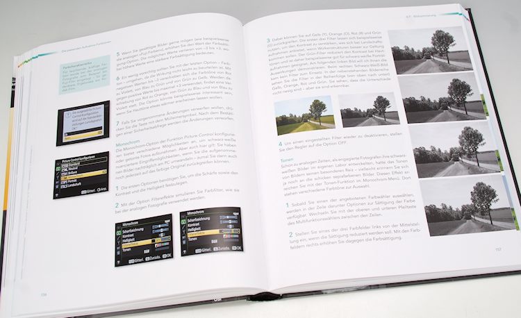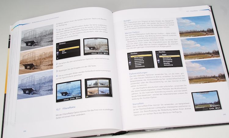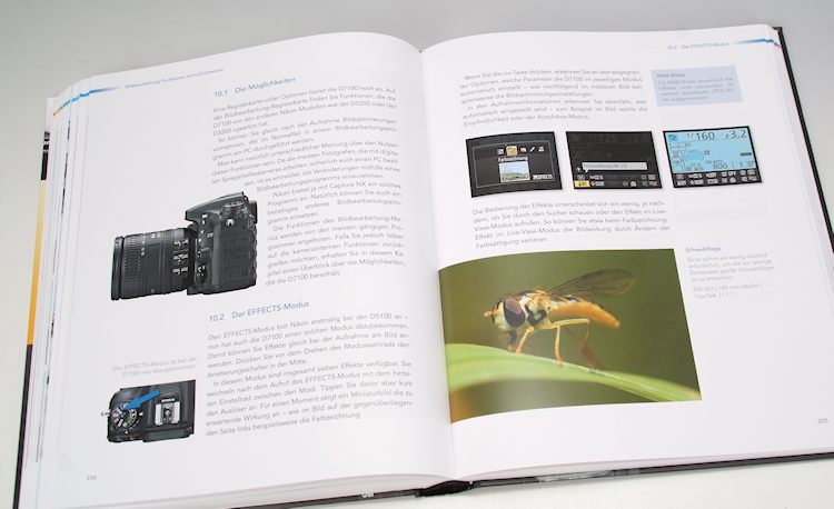 Im überreichlichen Funktionsangebot der D7100 findet man sich besser zurecht, wenn man die im Kapitel 8 beschriebenen Individualfunktionen auf seinen persönlichen Fotografierstil anpasst. Man spart dadurch Zeit und bedient die Kamera viel betriebssicherer. Hier werden auch alle Bedienelemente ausführlich mit Praxisratschlägen beschrieben. Logisches Folgekapitel: die Bildbearbeitungsfunktionen. Immer mehr Nachbearbeitungsschritte können schon in der Kamera vollzogen werden, sieben verschiedene Effekte bis hin zu Filterwirkungen, Farbzeichungs- und Miniatureffekten, dem Entfernen roter Augen oder die Veränderung des Farbtons.
