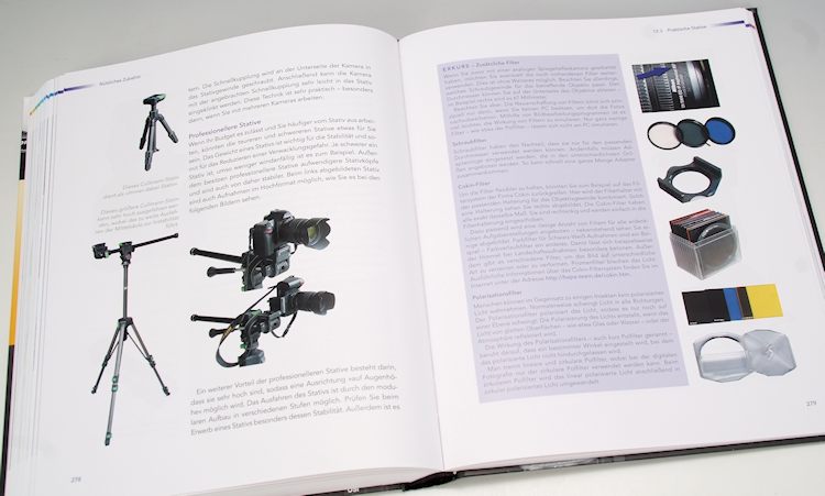 Gegen den Schluss des Buches behandelt Gradias empfehlenswertes Zubehör zur Nikon D7100, angefangen vom breiten Nikon-Objektivsortiment über die Systemblitzgeräte bis hin zu nützlichen Filtern und Stative. Danach wird die mitgelieferte Software Nikon Transfer und ViewNX 2 kurz beschrieben und der Autor erklärt, wie man die D7100 mit der Camera Control Pro 2 von einem Tablet aus fernsteuern kann. Im Anhang fasst Gradias die wichtigsten Menüdarstellungen als Referenz zusammen und trägt mit den entsprechenden Seitenverweisen mit einer neuen Orientierungshilfe zu einer noch besseren Übersicht im Buch bei.