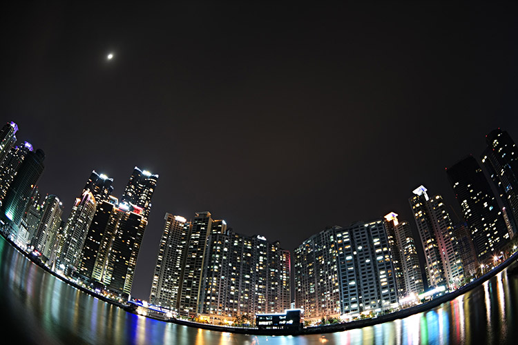 Das Samsung 3,5/10mm besteht aus sieben Elementen in fünf Gruppen inklusive einer hochwertigen asphärischen Linse. Um das jeweilige Bildmotiv bestmöglich zentral und im Bildvordergrund einzufangen, ist das Fisheye mit einer Kreisblende ausgestattet.