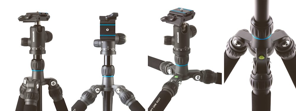 Dank 3-facher Beinwinkel-verstellung und zusätzlicher kurzer Mittelsäule lassen sich Makroaufnahmen auf bodennahen 23 Zentimeter realisieren. Feste Gummifüsse, ein um 360 Grad drehbarer Mittelsäulenhaken sowie eine im Stativstern eingebaute Wasserwaage machen das neue «Concept One» 622T zum Premiumprodukt unter den Reisestativen.