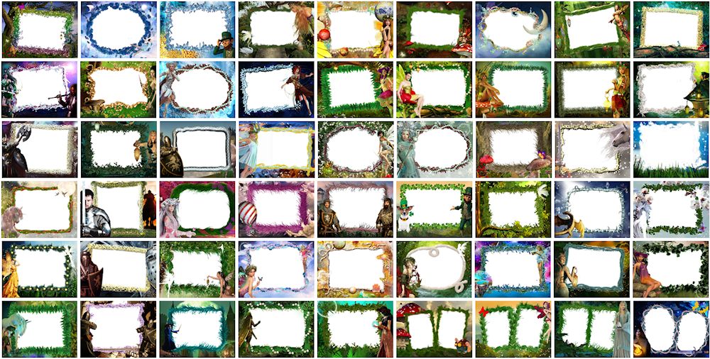 Das brandneue Fantasiepaket enthält 55 handgemalte Rahmen. Sehen Sie sich die Miniaturbilder der neuen Rahmen an. Zur Zeit sind neun zusätzliche Rahmenpakete verfügbar: Kinderpaket, Hochzeitspaket, Urlaubspaket, Valentinstagspaket, Sportpaket, Weihnachtspaket, Winterpaket, Frühlingspaket und das neue Fantasiepaket. Die Rahmen werden zu einem attraktiven Preis angeboten. Das kostenlose Rahmenpaket mit 30 handgemalten Bilderrahmen für jeden Anlass kann ohne Registrierung und gratis heruntergeladen werden.