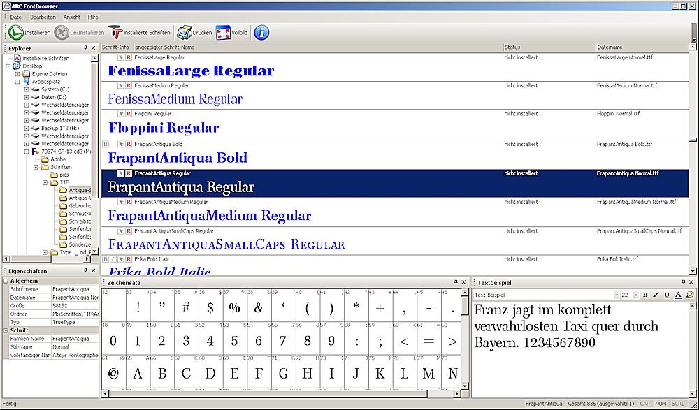 Damit man sich in dieser Sammlung schnell und sicher zurechtfindet, ist ein Schriftenbrowser auf der CD vorhanden, der jede Schrift perfekt und mit allen darstellbaren Zeichen anzeigt und auch direkt die Installation der Schrift unterstützt. Dazu gibt es noch einen gedruckten Schriftenkatalog.