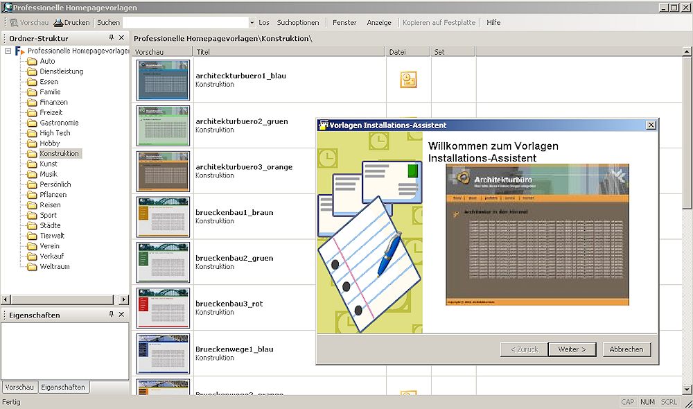 Auf einer weiteren DVD des Grafikpakets Pro 13 ist eine Sammlung verschiedenartigster, professionelle Homepage-Vorlagen zu finden, die sich bestens für private und geschäftliche Webauftritte eignen und leicht ins Internet integriert werden können. Dazu gibt es ein Vorlagenhandbuch als pdf, einen Vorlagenbrowser und einen Installations-Assistenten. Auf der DVD finden sich Vorlagen zu folgenden Bereichen:
