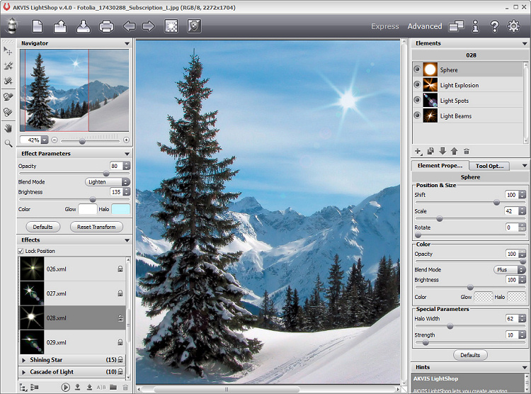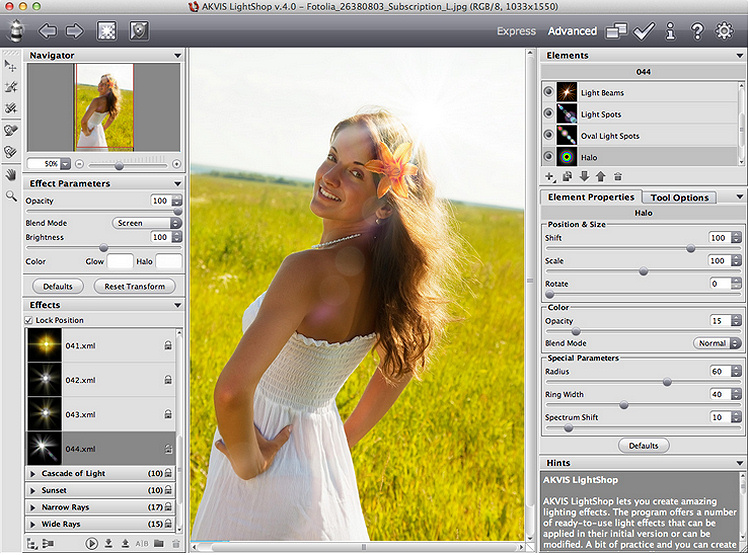 Akvis veröffentlicht die neue Version und das kostenlose Update von LightShop V.4.0 für Windows und Macintosh. Die Software erlaubt es, eine endlose Zahl von Licht- und Sterneneffekten zu erzeugen und bringt ein neues Interface, neue Effekte-Leiste mit 138 einsatzbereiten Lichteffekten, neue Elemente zur Erstellung von Lichteffekten und die Kompatibilität zu Photoshop CC.