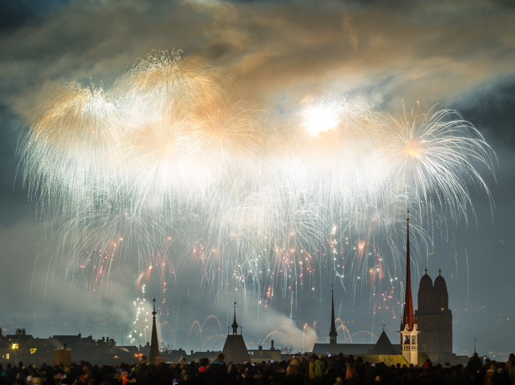 Mit der Belichtung sollte man im besten Fall beginnen, bevor die Raketen abgeschossen werden. Das Glück entscheidet über die Bildausbeute. Nicht jeder «Schuss» wird also zu einem Volltreffer, darüber sollte man sich bewusst sein. Bei einem Feuerwerk sind es zu viele Faktoren, die für den Fotografen vorher nicht kalkulierbar sind. Sehr viele Fotografen greifen zur Serienbildfunktion, wählen kürzere Belichtungszeiten und kombinieren die Einzelaufnahmen zu einer eindrucksvollen Collage.