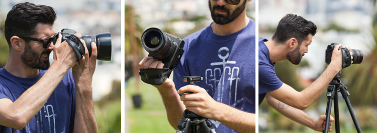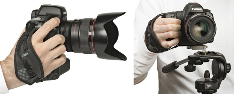 Joby, der Erfinder, der «GorillaPod»-Stative, hat eine Kombination von Handschlaufe mit Schnellwechselplatte herausgebracht, mit der schnell von der bequemen Handhabung der Kamera mit einer Handschlaufe aufs Stativ gewechselt werden kann. Das ist bei schnellen Shootings praktisch, die man abwechslungsweise ab Stativ oder aus freier Hand realisiert.