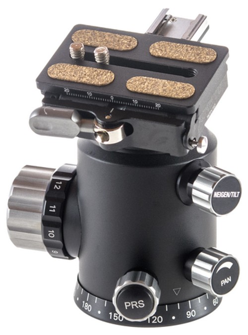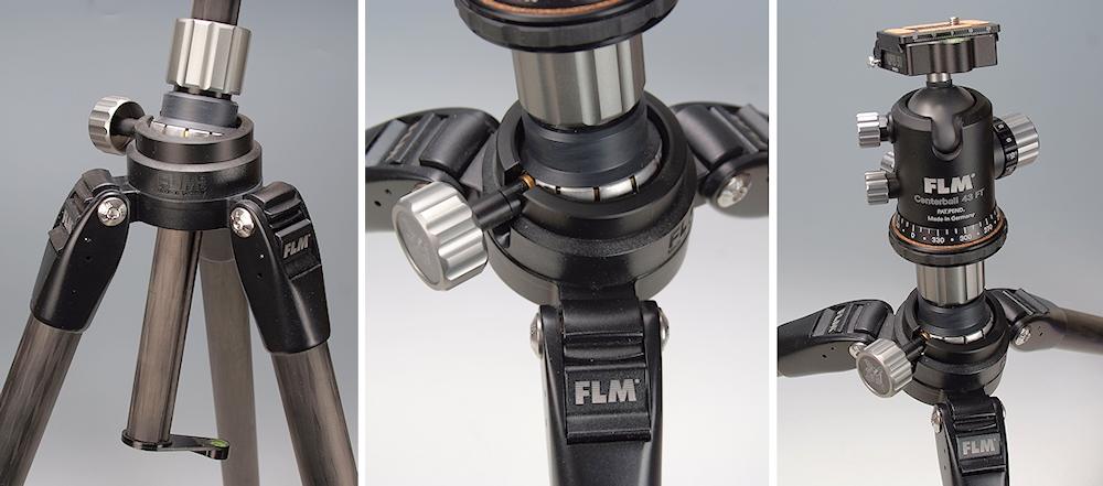 Als Stativkopf genügt bei Systemkameras der kleine CB-32F mit der Schnellwechselbasis PRB55. Für Spegelreflexkameras empfiehlt FLM den Stativkopf CB-38FTR. Dieser hat nicht nur einen grösseren Kugelkopf und hält mehr Gewicht aus, sondern besticht ebenfalls durch die erweiterten Funktionen wie «Tilt» um den Stativkopf als Zwei-Wege Neiger zu nutzen. Der zusätzliche PRS Knopf (Pan-Rast-Stop) der ein hör- und spürbares 15° Rasterklicken aktiviert, vereinfacht einem die Kontrolle bei Panorama-Aufnahmen.