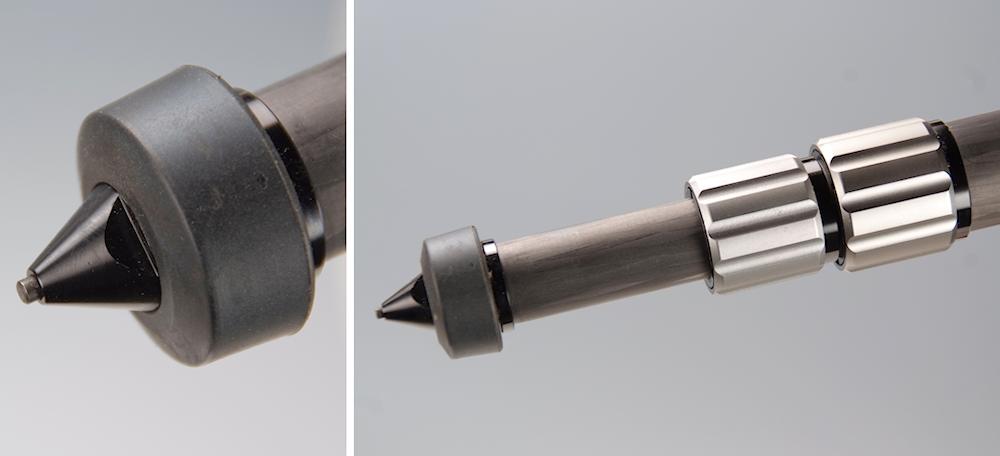 Die Segmentarretierungen lassen sich leicht und griffig bedienen, um den Auszug der Carbon-Profile zu verändern. Wahlweise kann der Gummipuffer oder der Erdspiess vorgedreht werden