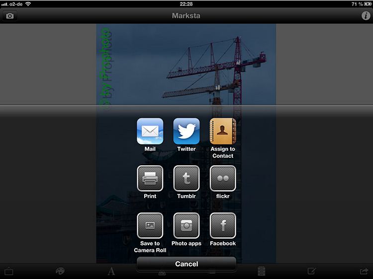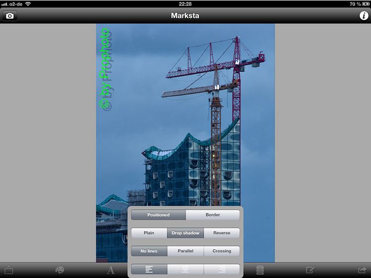 MarkstaEin Klick oder Tipp – und schon ist das Foto geteilt. Bei Facebook, Twitter, per Mail verschickt. Und schon hat der Fotograf keinen Zugriff mehr darauf, oder zumindest nur einen eingeschränkten. Da wäre es doch praktisch, wenn die Welt wenigstens sehen würde, wem das Bild gehört. Die App Marksta löst das Problem: Damit lassen sich Schriftzüge ins Bild integrieren.