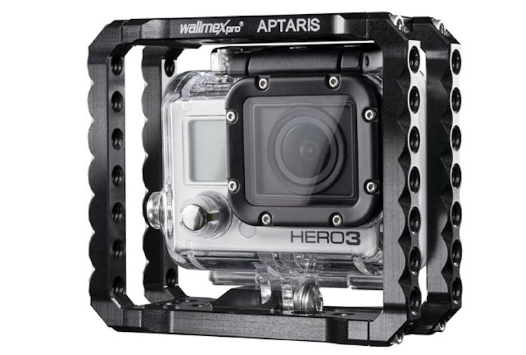 Walimex Pro erweitert sein Cage-System Aptaris. Das in Kooperation mit dem deutschen Hersteller SIX gefertigte System bereitet Kameras für das Anbringen von vielfältigem Zubehör vor und ermöglicht so professionelle Filmergebnisse. Walimex Pro präsentiert nun eine höhenverstellbare Universalversion, passend für die meisten Spiegelreflexkameras, zu einem Preis von CHF 629 sowie massgeschneiderte Versionen für die Kameramodelle Blackmagic Pocket, Olympus OM-D E-M5 und GoPro Hero 2 und 3 ab CHF 269. Für noch mehr Flexibilität im Einsatz vervollständigt weiteres Zubehör das System. So kann das Aptaris-Cage dank seiner modularen Bauweise jederzeit zu einem vollwertigen Schulter-Rig erweitert werden.