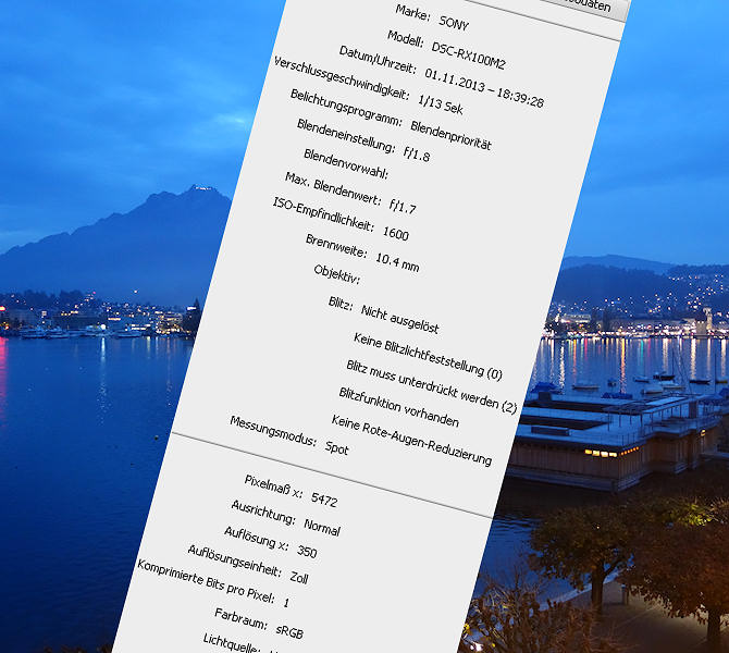In jeder Bilddatei sind in den sogenannten Metadaten alle Bildinformationen abgespeichert