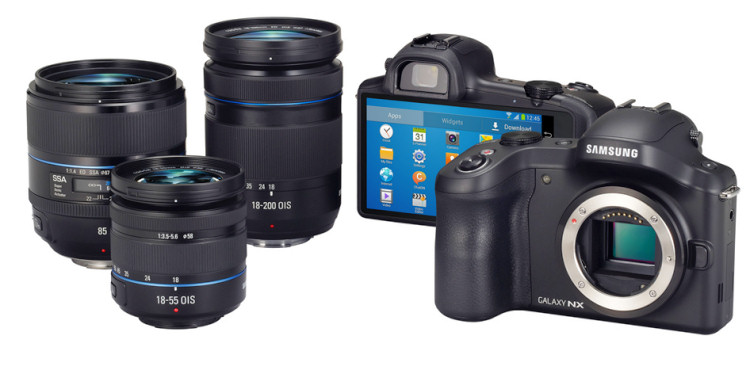 Die Samsung Galaxy NX ist die erste kompakte Systemkamera und dritte Fotokamera mit Android-Betriebssystem. Sie lässt sich also vorne durch Optiken und «hinten» durch Apps erweitern. Natürlich kann die Kamera auch mit einer SIM-Karte bestückt werden und dann über Mobilfunk Daten austauschen und aufs Internet zugreifen.