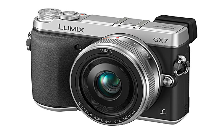 Panasonic DMC-GX7s slant_H-H020A Die Panasonic Lumix GX7 bietet erstmals für eine Panasonic-Kamera die Bildstabillsierung per beweglichem Sensor. Zuvor konzentrierte sich Panasonic auf Bildstabilisierung in den Objektiven, was diese etwas fetter und teurer macht. Mit der GX7 und Sensor-Shift sind bildstabilisierte Aufnahmen mit jedem beliebigen Objektiv möglich. Dies gilt auch für adaptierte Objektive. Besonders gefällt der integrierte elektronische Sucher, der nicht – wie üblich – eine sperrige DSLR-Gehäuseform verursacht, sondern wenig hervorsteht, und sich bis zu 90 Grad nach oben neigen lässt.