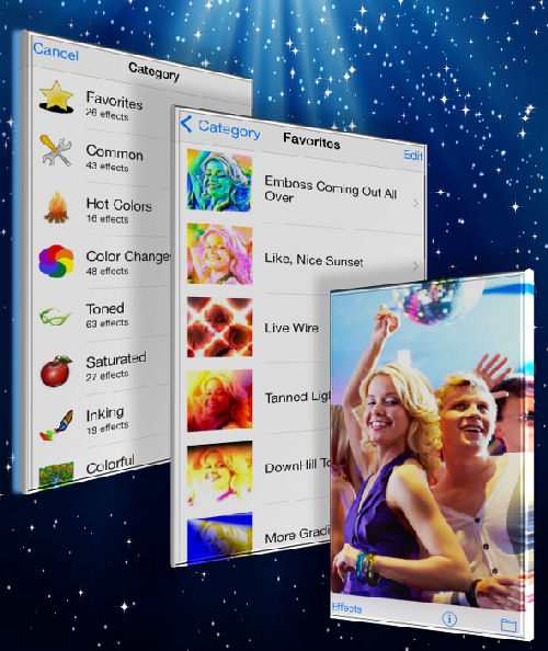 iPhone und iPad sind nicht zuletzt wegen ihrer Fotofeatures beliebt. Jetzt gibt es eine App, mit der direkt nach der Aufnahme im Gerät die Bilder mit besonderen Effekten versehen werden können – und dies nur durch einfaches Anwählen bestimmter Filter. Die Lite-Version ist kostenlos, die Pro-Version kostet CHF 1.–.