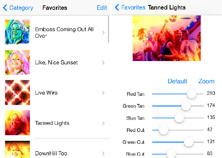 Damit es gelingt, besonders eindrucksvolle Effekte jederzeit schnell wiederzufinden, speichert die App sie per Fingerzeig gern in einer Favoritenliste.