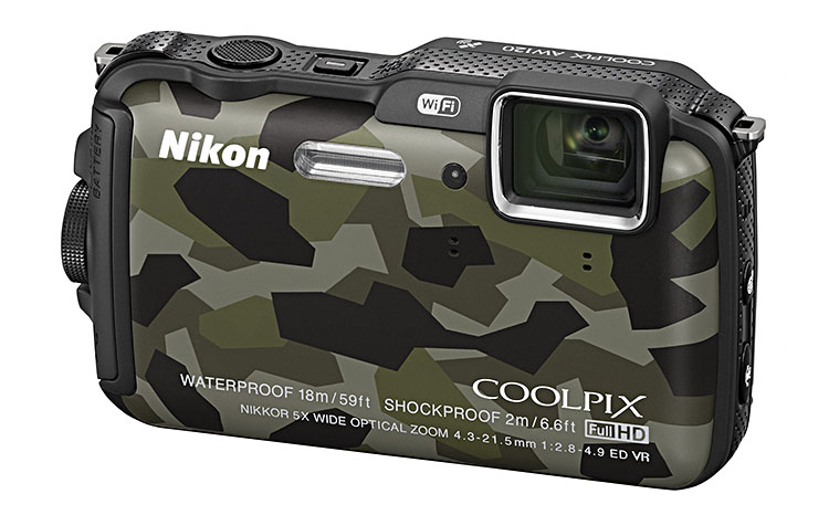 Das flache Allwettermodell (AW) Coolpix AW120 folgt der AW100 von 2011 und der AW110 von 2013.