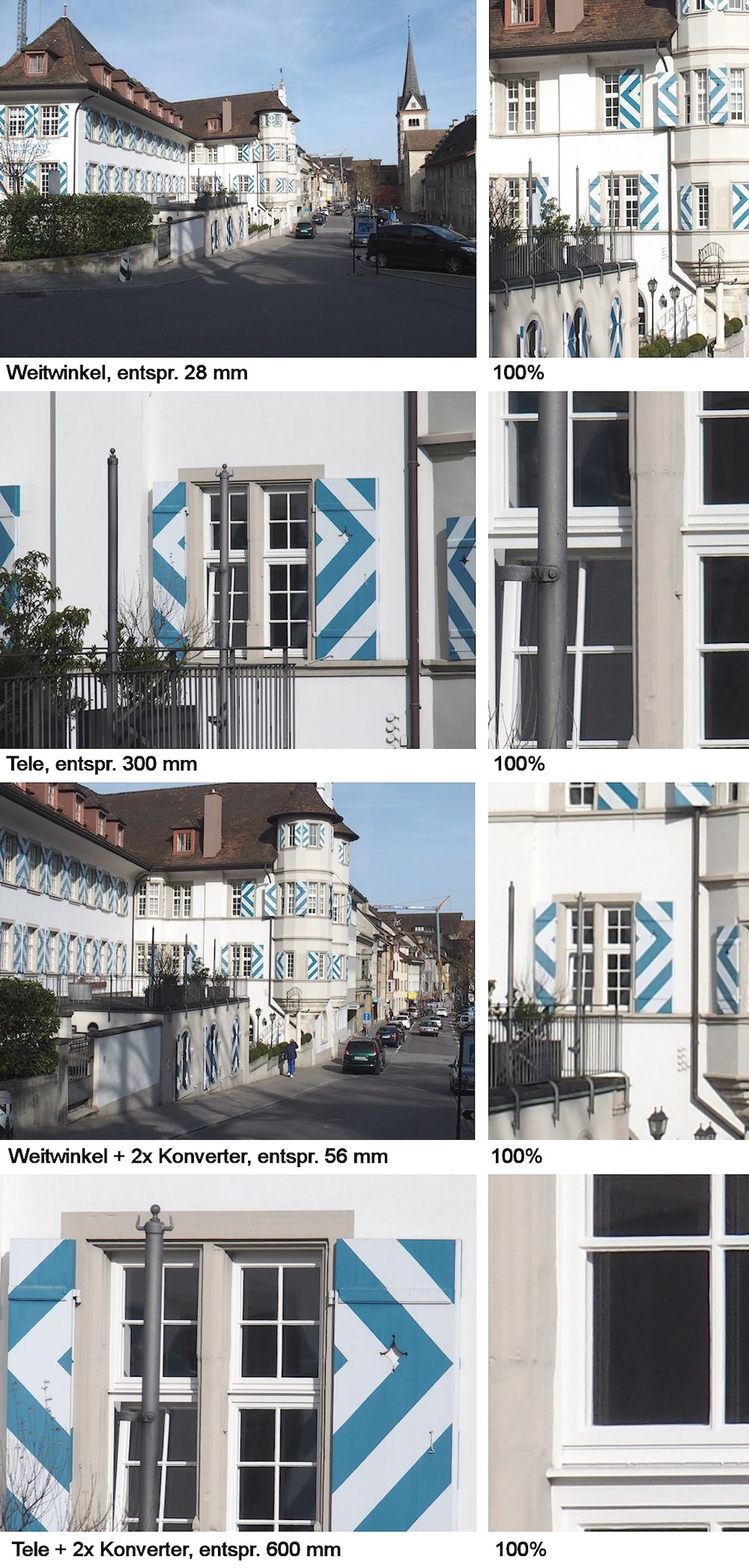 Der Brennweitenbereich der Stylus 1 mit 100%-Ausschnitt – ohne und mit Digitalkonverter