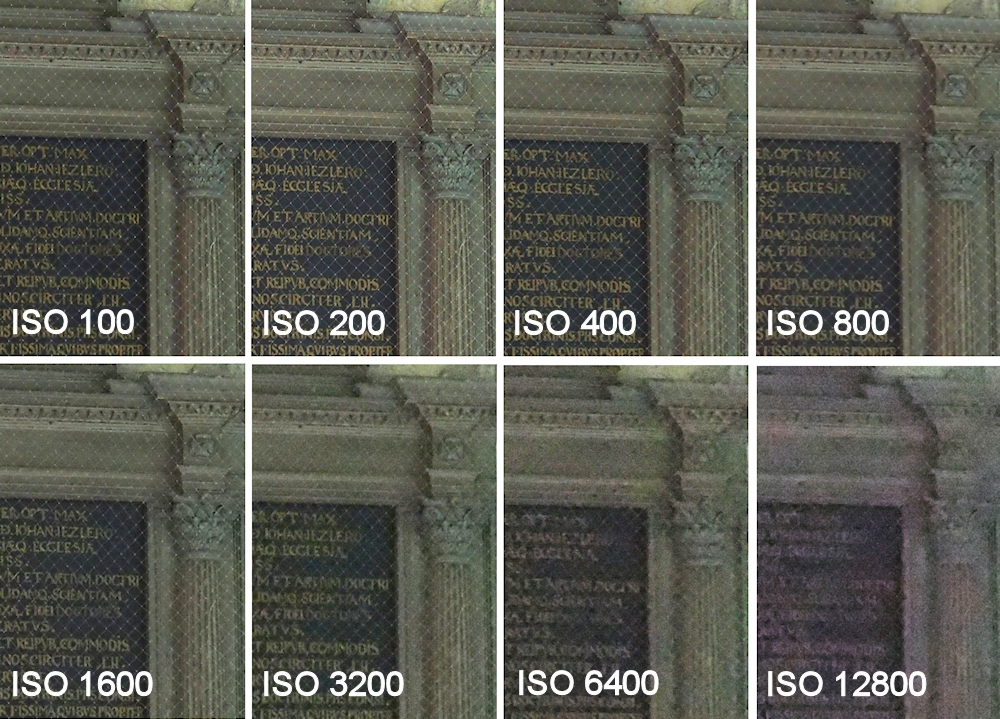 Das Rauschverhalten der Stylus 1 bei verschiedenen Empfindlichkeiten (100% Ausschnitt)