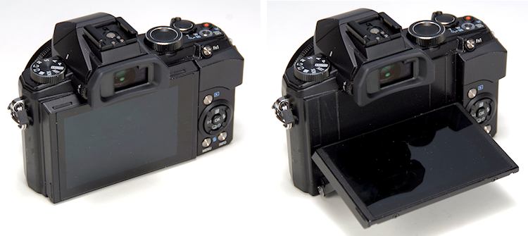Das helle 3-Zoll-Display ist 45° nach unten und 90° nach oben schwenk- jedoch nicht seitlich drehbar. Damit sind Überkopfaufnahmen und Bilder aus Tiefperspektiven einfach zu bewerkstelligen. Ebenso gut und auch für Brillenträger problemlos einsehbar ist der elektronische Sucher mit 1,4 Millionen Bildpunkten und einer Dioptrieneinstellung. Nähert man sich dem Suchereinblick, so wird das Bild automatisch vom Display in den elektronischen Sucher umgeleitet.