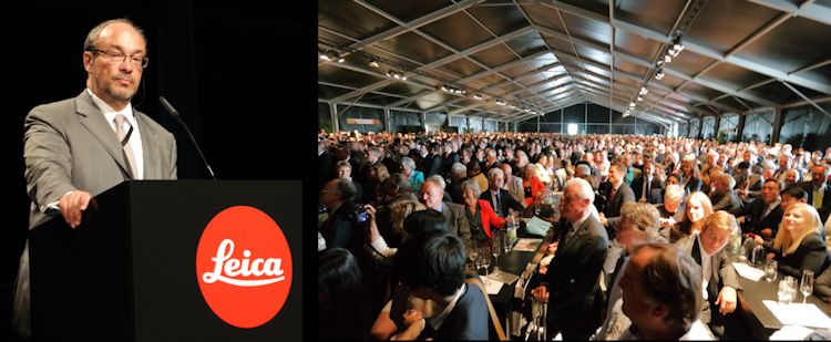Mit ihren derzeit 700 Beschäftigten und dem absehbaren mehrschichtigen Betrieb ist die aus der benachbarten Kleinstadt Solms wieder an den Ursprungsort zurück gekehrte Firma heute einer der wichtigsten Arbeitgeber in Wetzlar und so erstaunt es kaum, dass sich zu den Eröffnungsfeierlichkeiten im schwarzen Leica-Zelt neben rund 2’000 geladenen Gästen und dem Investor Dr. Andreas Kaufmann und dem Architekten Martin Gruber auch zahlreiche Honoratioren in den Kreis der Eröffnungsredner einreihten. Dazu zählte die gesamte Hierarchie der öffentlichen Hand vom hessischen Finanzminister Dr. Thomas Schäfer, dem Regierungspräsidenten Lars Witteck aus Giesen, dem Landrat des Lahn-Dill-Kreises Wolfgang Schuster bis zum Wetzlarer Oberbürgermeister Wolfram Dette.
