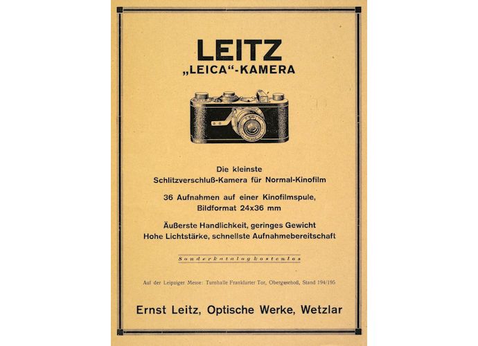 Die erste Leica-Anzeige im Frühjahr 1925. 36 Aufnahmen mit einer Filmspule war eines der wichtigsten Argumente