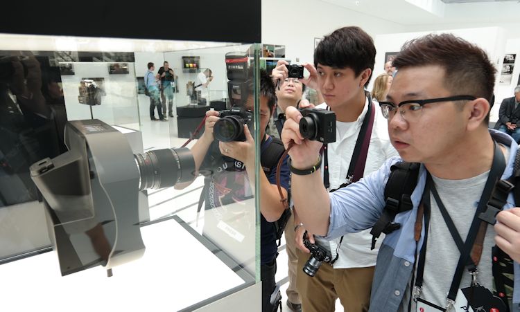 Journalisten aus allen Ländern bewundern die seltenen Leica-Exponate
