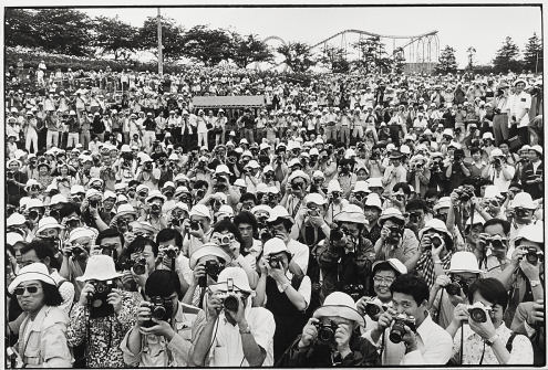 Unzählige durch ihren Sucher schauende Mitglieder des «Nikon Camera Club» verewigte David Douglas Duncan mit seiner Leica 1980 in Tokio (Ausrufpreis: 3’000 Euro). Mit 19’200 Euro war es die zweitteuerste Fotografie. Das Bild zeigt hunderte Nikons gegen eine Leica gerichtet – ein schöne Pointe der Westlicht Auktion zum Leica-Jubiläum.