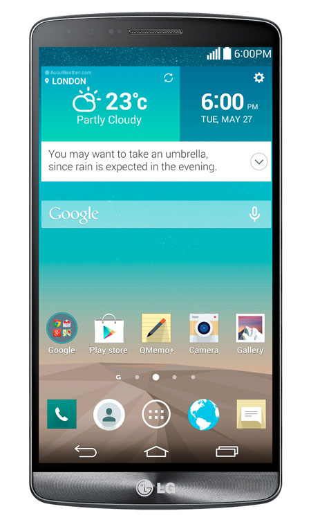 Smart Notice: Wie ein Privatsekretär erteilt Smart Notice Vorschläge und Empfehlungen auf Basis des Nutzerverhaltens, der Telefonverwendung und des Aufenthaltsorts, um den Nutzer zeitnah mit relevanten Informationen zu versorgen. So kann Smart Notice den Nutzer an einen eher abgelehnten Anruf erinnern und ihn fragen, ob er die Person zurückrufen möchte. Wenn sich eine grosse Anzahl ungenutzter Dateien oder Apps auf dem G3 angesammelt hat und wertvollen Speicherplatz in Beschlag nimmt, wird das G3 den Nutzer fragen, ob er diese entfernen will. Was Smart Notice allerdings besonders von anderen virtuellen Privatsekretären unterscheidet, ist seine Fähigkeit, Alltagssprache zu verwenden. Anstatt z.B. einfach die heutige Temperatur und Wettervorhersage anzuzeigen, wird Smart Notice eine Empfehlung erteilen wie «Vielleicht nimmst Du besser einen Regenschirm mit, weil es heute Abend regnen wird.»