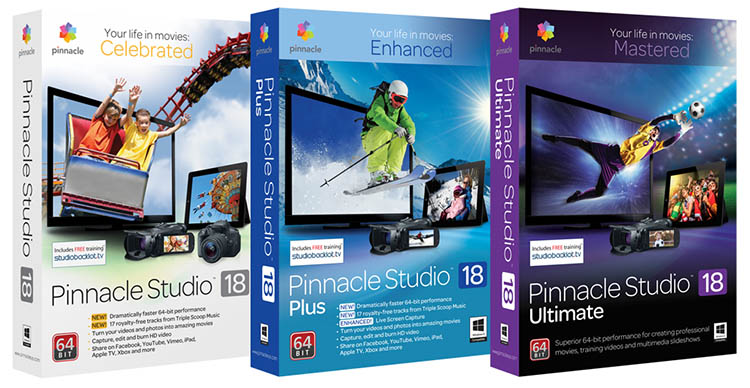 Die neue Pinnacle Studio 18 Produktfamilie umfasst Pinnacle Studio 18, Pinnacle, Studio 18 Plus und Pinnacle Studio 18 Ultimate. Die neue Version unterstützt nun 64-Bit und ist dadurch spürbar schneller geworden. Anwender profitieren zudem von der Intel Quick Sync-Optimierung, die weitere Leistungssteigerungen bietet, einer optimierten Benutzeroberfläche und neuen Musiktiteln von Triple Scoop Music. Für Benutzer, die sich maximale Videobearbeitungsleistung wünschen, bietet Pinnacle Studio 18 Ultimate jetzt ausserdem 4K und Ultra HD Smart Encoding, Unterstützung für XAVC S (HD und 4K HD) und viele Extras von NewBlue.