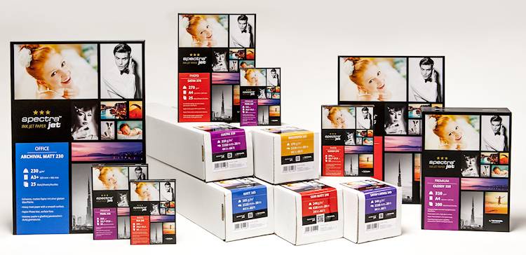 Insgesamt drei neue Linien («Office», «Photo» und «Prermium») mit Grammaturen von 130 g bis 310 g/m2 wurden auf der Photokina erstmalig präsentiert und sind jetzt lieferbar. Die neuen Spectra Jet Ink Jet Papiere sind in erster Linie für das professionelle Fotostudio gedacht, doch sind sie auch im Fotofachhandel erhältlich für Kunden, die hohe Ansprüche an Ihre Digitalausfrucke stellen.