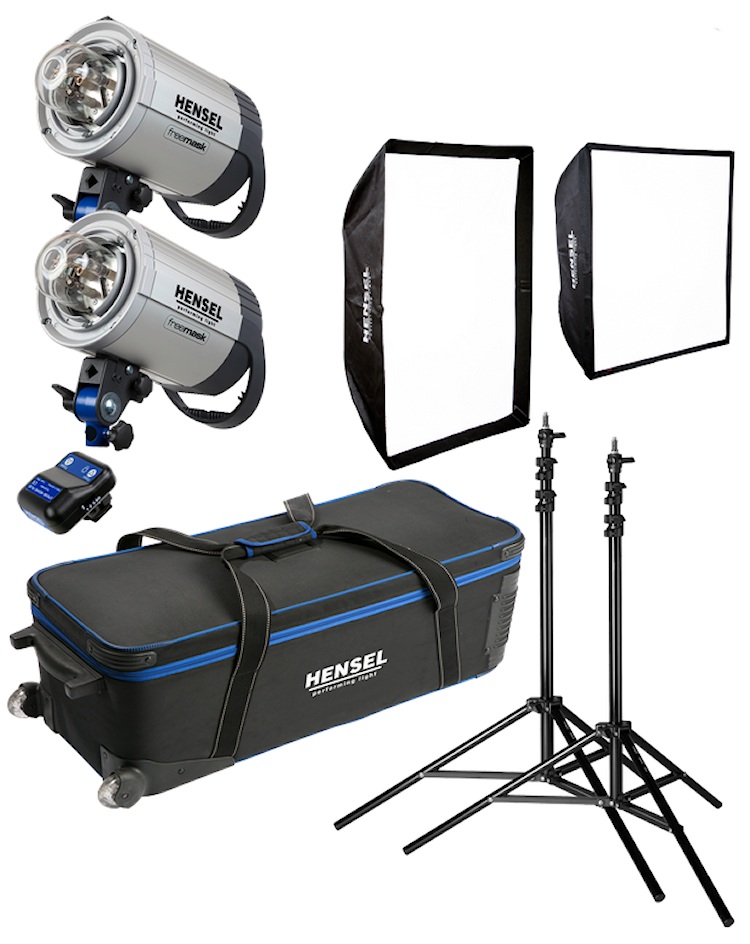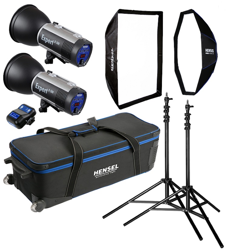 Die beiden Angebote sind interessant für Ein- und Aufsteiger. Der erste der beiden Kits ist vor allem für den Einsteiger und das kleine Porträtstudio gedacht. Hier wird vor allem mit den beiden mitgelieferten Softboxen E 90x90cm und E 80×100 cm gearbeitet – die beiden Normalreflektoren müssen als Option dazugekauft werden. Das Gerät hat eine Leistung von 500 Joule, jedoch eine längere Blitzwiederholzeit und Abbrenndauer als das Hensel Expert D 500 des zweiten Kits (siehe unten).