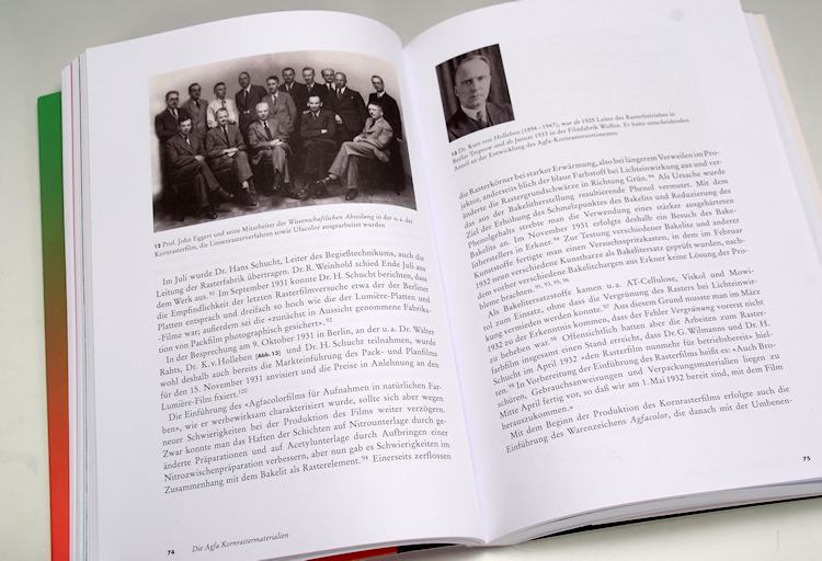 Damit das Buch nicht allzu speziell wird, und auch um den Leser in die Materie einzustimmen, gehen die ersten beiden Kapitel auf die Geschichte der Fotografie und der Farbfotografie ein. Danach geht es um die Geschichte von Agfa, beziehungsweise später Orwo, um die verschiedenen Korn- und später Linsenrasterverfahren, in welche Agfa vor der Entwicklung der Dreischicht-Technologie grosse Hoffnungen setzte. So geht es dann weiter über die Bipack-, bzw. Zweifarbenverfahren bis dann endlich mit den Agfacolor-Verfahren der Durchbruch in der Farbfotografie gelang. Eine spannende und gut recherchierte Geschichte, welche die Pioniere der Farbfotografie neu ins Licht rückt und mit den vielen Quellenangaben auch eine solide Grundlage für weitere Recherchen darstellt..