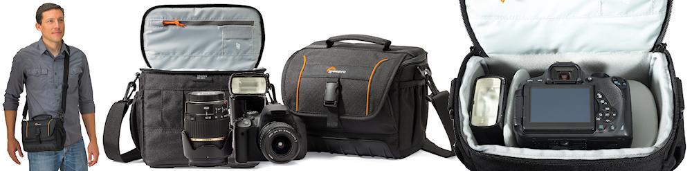 Für den Transport einer umfangreichen Fotoausrüstung mit DSLR, angesetztem Objektiv und Blitz stehen die drei Schultertaschen Adventura SH 120 II, SH 140 II und SH 160 II zur Auswahl. In die SH 120 II und SH 140 II passen jeweils eine DSLR mit angesetztem Kit-Objektiv wie z.B. Canon 700 D mit 18-135mm Objektiv. Die SH 140 II bietet zusätzlich Platz für ein Objektiv wie z.B. ein 28-300mm Zoom Objektiv und einen Blitz. Wer eine DSLR mit angesetztem Kit-Objektiv wie z.B. Canon 60D mit 18-135mm Objektiv und einen Blitz transportieren möchte, entscheidet sich für die SH 160 II. Die Modelle sind zu einem UVP von CHF 45.00, CHF 55.00 und CHF 59.00 erhältlich.