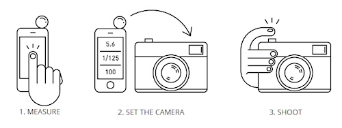 Die Messung erfolgt durch Antippen der Schaltfläche «Measure». Anschliessend kann durch die Kombinationen von Blendenwert und Verschlusszeit geblättert werden. Wenn eine Kombination gefällt, werden die Werte manuell auf die Kamera übertragen. Mehrere Messungen einer Szene sind ebenfalls möglich, wobei eine rote Linie den Durchschnitt anzeigt. Ferner lässt sich in den Einstellungen eine Belichtungskorrektur definieren, wenn sich zum Beispiel ein Graufilter o.ä. auf dem Objektiv befindet.