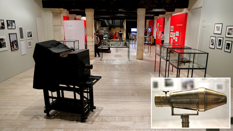 Dazu gibt es noch einige weitere Exponate und Videopräsentationen zur Arbeit von Nicéphore Niépce, darunter auch die bekannte Heliographie des Kardinals von Amboise. Im Raum daneben wird auf die Daguerreotypie eingegangen, das Verfahren von Louis Jacques Mandé Daguerre, das 1839 bekannt gemacht und von der französischen Regierung der ganzen Welt geschenkt wurde.