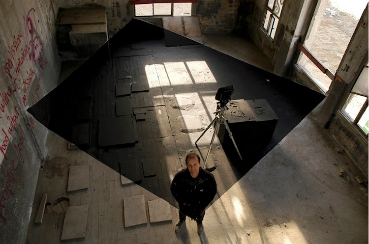 Georges Rousse. Der französische Künstler präsentiert eine monumentale Plastik in Form einer Anamorphose. Mit der Arbeit von Georges Rousse wird der Raum einer leeren Scheune zu einer bewohnten Umgebung und gewinnt durch den Betrachter eine physische und sensorielle Bedeutung. (Résidence à la grange du Bougnon)
