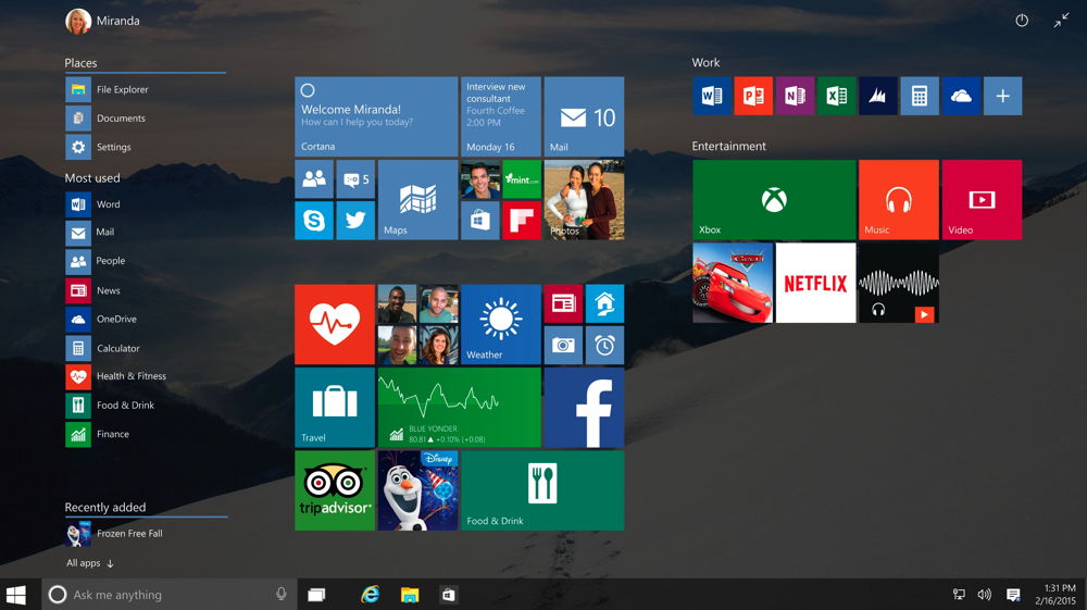 In die Entwicklung von Windows 10 sind Feedback und Ideen von 5 Millionen Insidern, darunter auch 25‘000 aus der Schweiz, eingeflossen. Das Resultat ist besonders bei Personalisierbarkeit und Produktivität spürbar.
