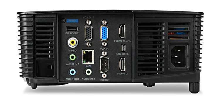 Ein zusätzlicher innenliegender HDMI/MHL-Port mit eigener Stromversorgung über Micro-USB erlaubt den Anschluss des optionalen Acer WirelessHD-Kit MWiHD1 oder des Acer WirelessCAST MWA3. Damit lassen sich die Bildsignale bequem vom Notebook, Tablet oder Smartphone sowie vom TV-Receiver oder der Spielekonsole wiedergeben.