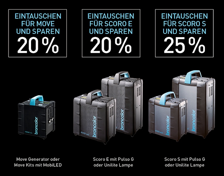 Light+Byte führt zur Zeit die bislang grösste Broncolor Eintauschaktion durch, mit bis zu 25% Preisvorteil. Das ist die Gelegenheit, um jetzt auf die neuesten Broncolor-Geräte umzusteigen und neben dem Kostenvorteil auch einen höheren Arbeitskomfort und mehr Sicherheit zu gewinnen. Die Eintauschaktion läuft noch bis 15. August 2015.