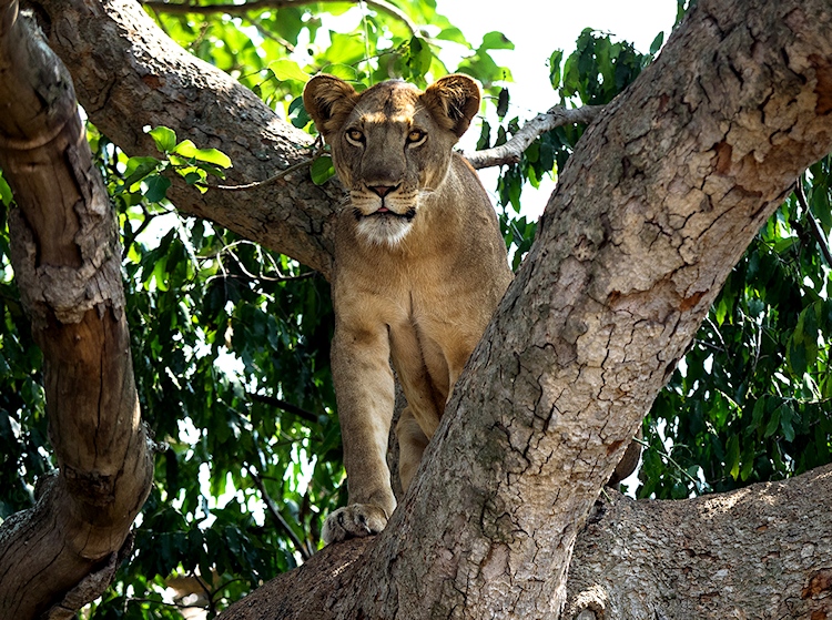Tag 6 / Samstag, 6. Februar. Heute fahren wir in den südlichen Teil des Nationalparks, den Ishasha-Sektor, in dem sich die berühmten baumkletternden Löwen aufhalten. Mit etwas Glück können wir diese in den ausladenden Feigenbäumen entdecken.
