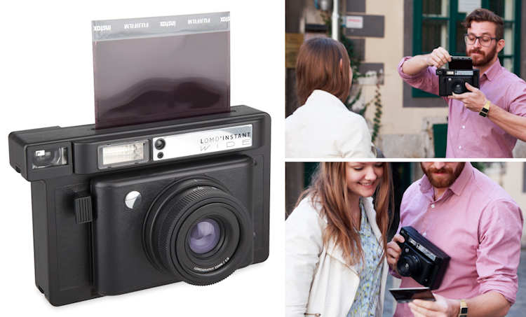 «Grösser ist besser» lautet das Motto der neuen Lomo’Instant Wide, welche den Fujifilm Instax Wide Film verwendet. Sie ergänzt das Sofortbildangebot der bisherigen Lomo Instant für den Fujifilm Instax Mini Film. Zur Nutzung kreativer Möglichkeiten ist sie mit Fernauslöser, unbegrenzten Langzeit- und Mehrfachbelichtungen, Blitzkontrolle, verschiedenen Objektivvorsätzen, Blitzsynchronisationsanschluss, vier verschiedenen Farbfiltern sowie Belichtungskorrektur ausgestattet.